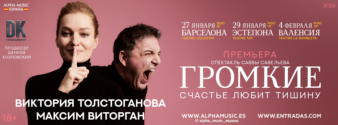 В городах Испании состоится премьера спектакля «Громкие», где на одной сцене встречаются два выдающихся актёра современности – Виктория Толстоганова и Максим Виторган.